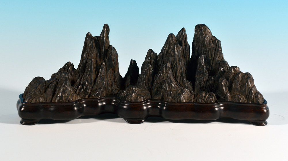This is an attractive Hubei province chrysanthemum flower stone held in a natural root base. The stone and base together measures 65 cm high, 32 cm wide, and 8 cm thick. The matrix stone is ancient—250 million years old. It is marine limestone with white calcite or celestite mineral formations resembling flowers.