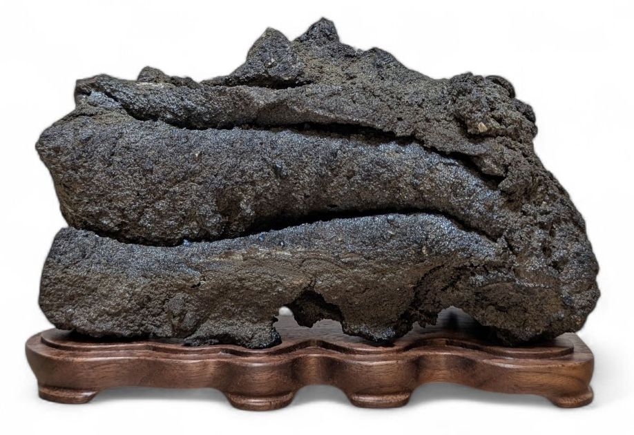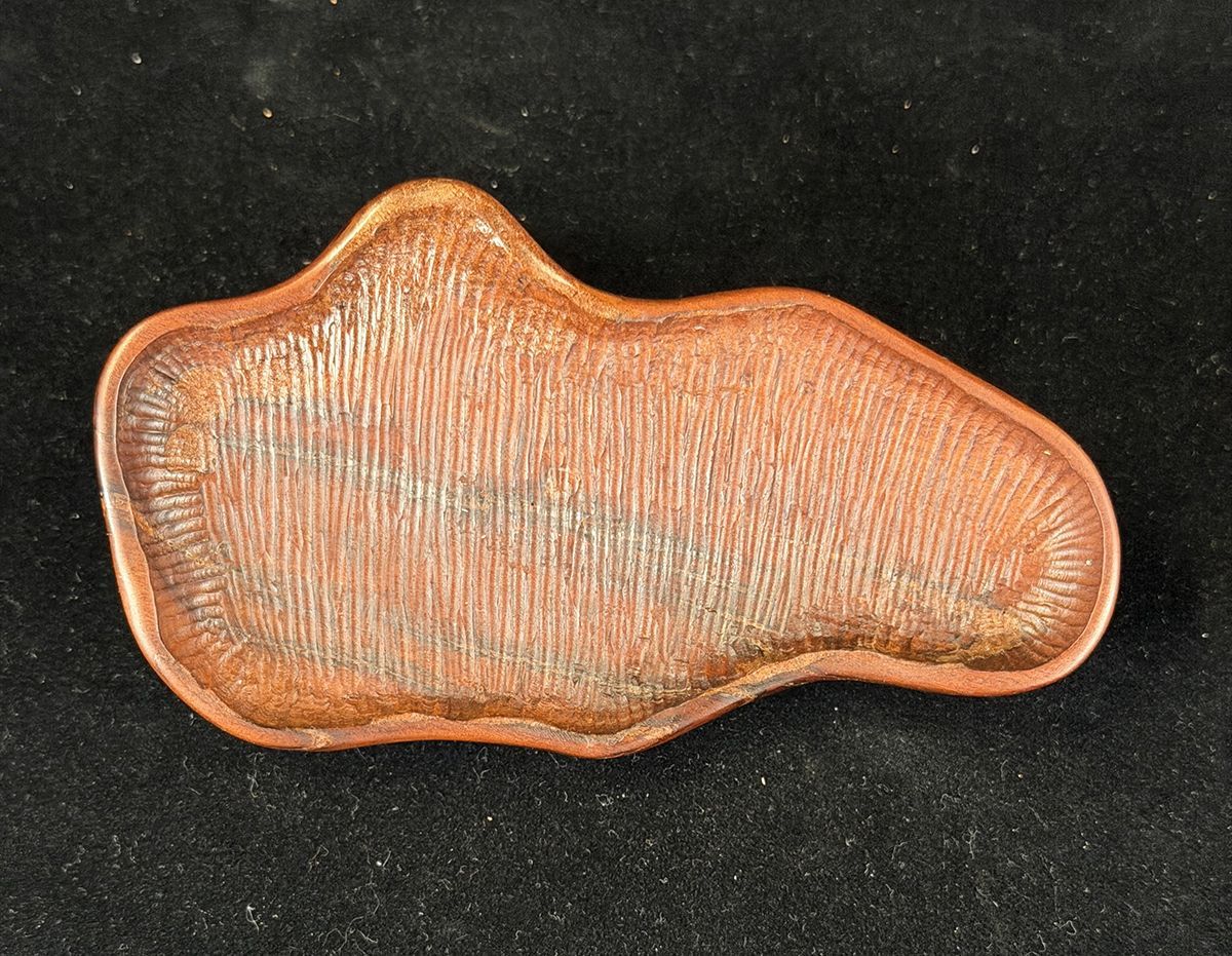 Period of Activity: Tony collected stones for over 30 years before discovering the art of viewing stones. His first bases emulated Japanese daiza, but subsequent bases quickly evolved into a more contemporary interpretive. He is known for his innovative carving skills. Tony has only made a limited number of bases, about 50. His contemporary interpretive style is in response to the types of stones he was trying to seat in a carved wood base.