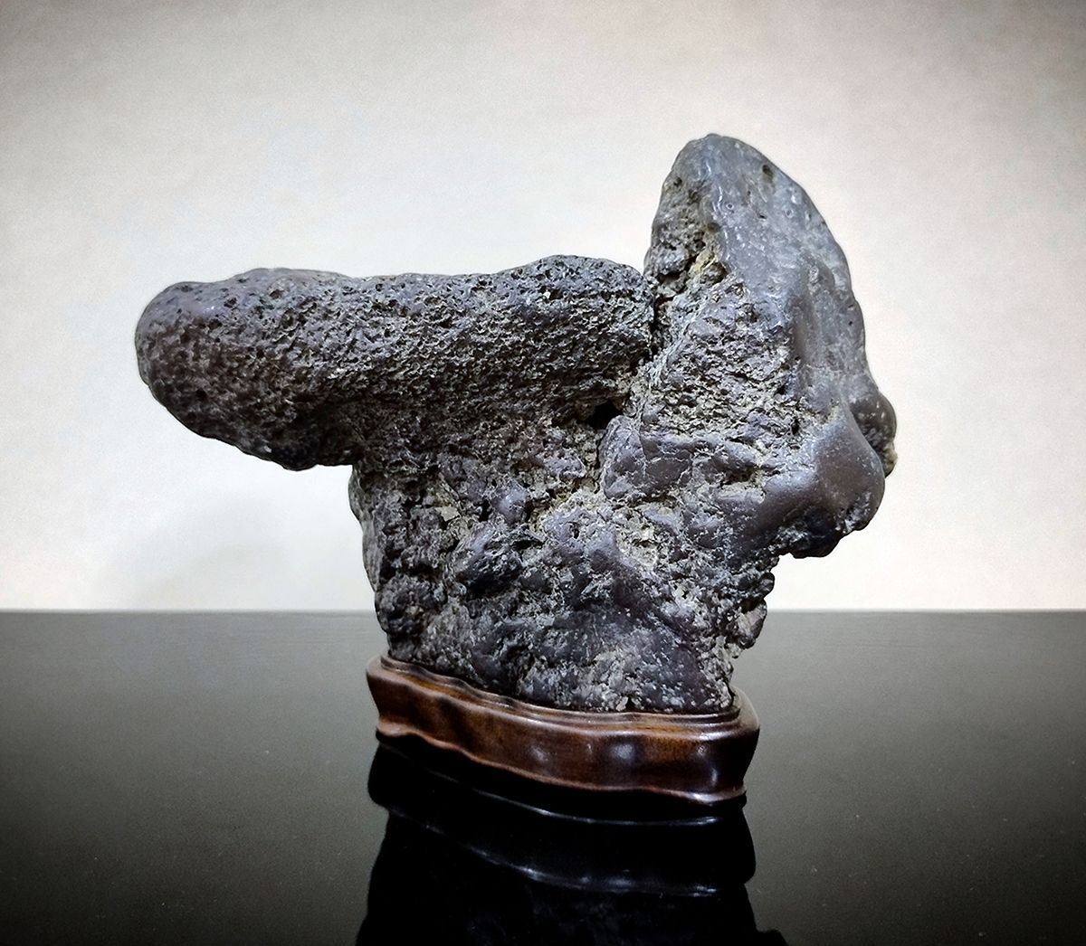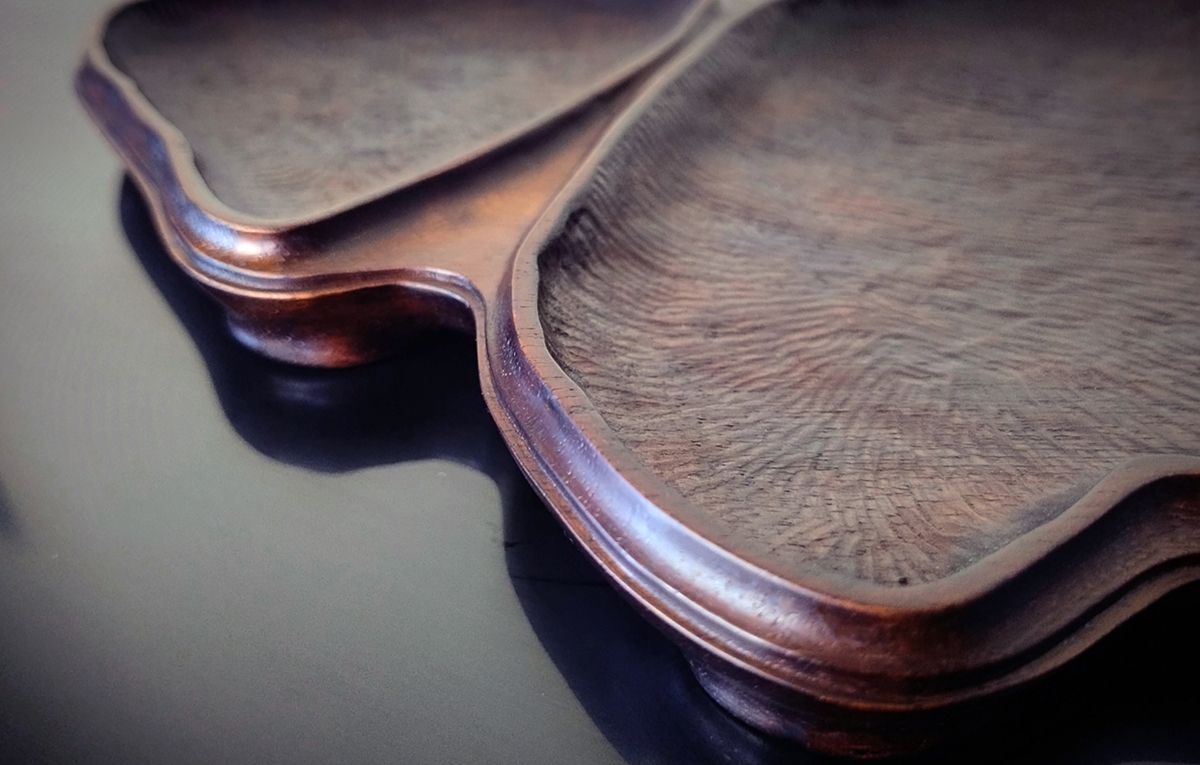 Preferred Wood: Hotomi uses rosewood or zitan wood for bases depending on the stone’s quality. He also used Paulownia wood to make some bases. His storage boxes are made of Paulownia for the inner box and mulberry wood for the outer box.