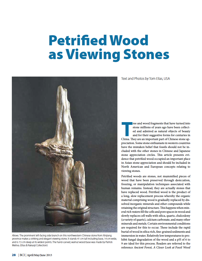 The purpose of this glossary is to help viewing stone enthusiasts to gain a more in-depth knowledge of the terms used in stone appreciation practices. Japanese terms are used more frequently than their Chinese counterparts. Since this is an ongoing project, we anticipate adding additional terms. We encourage you to contact us with suggestions for future words to add or clarify if our definitions are not clear. Please send you questions and recommendation to tselias@msn.com.