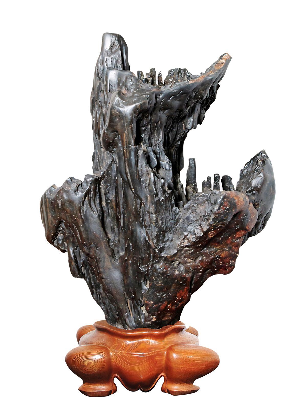 "This large, dark chocolate brown stone was found in the Nanham River in South Korea. This extraordinary stone with its water worn, irregular surface truly fits the Korean belief “One Life, One Stone.”
